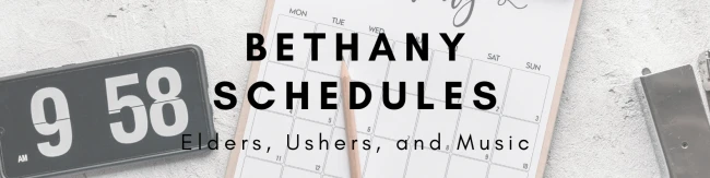 Bethany is blessed with many wonderful volunteers whose service is very much appreciated. Below are a list of schedules for our faithful volunteers.